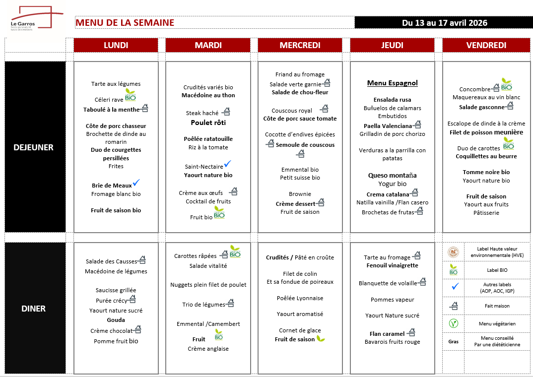 Menus pouvant être modifiés selon les approvisionnements et livraisons