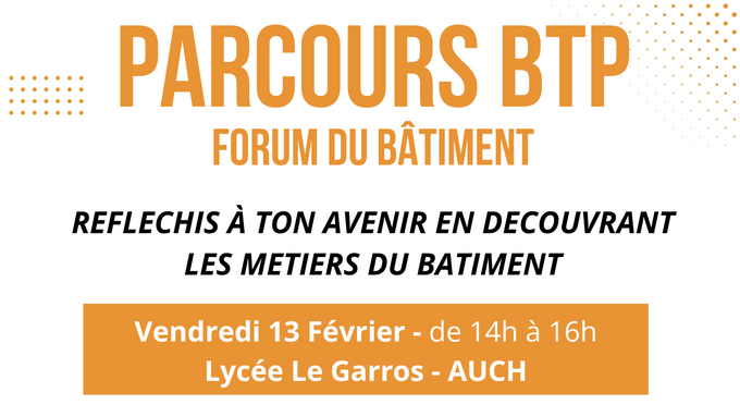 Vendredi 13 Février aura lieu le forum des métiers du bâtiment à destination des collégiens d'Auch