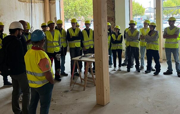Un focus spécialement pensé pour nos étudiants avec les explications de la construction ossature bois et charpente par l'entreprise COMPAS et le cabinet d'architecture Airoldi.